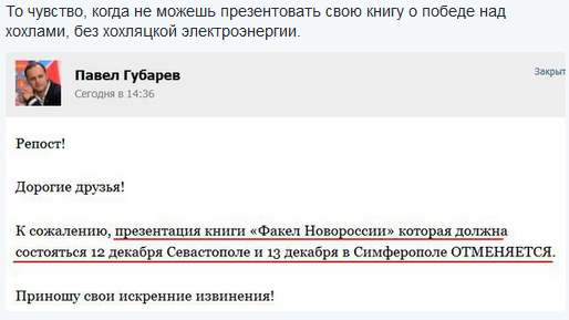 Арис Опубликовано 1 декабря, 2015 Автор Опубликовано 1 декабря, 2015 у Ариса есть шанс занять помытое кресло :Laie_22: Показать"председатель Совета министров" Крыма Сергей Аксенов готов уступить свою должность тому, кто лучше него сможет решить возникшую ситуацию с отключением полуострова от энергоснабжения. Об этом он заявил в интервью агентству ТАСС. "Любому, кто придет сейчас со стороны, предложит вариант решения, и моментально сейчас начнется подаваться свет, я сразу кресло свое помою и уступлю ему", – заявил Аксенов. При этом крымский "премьер" утверждает, что крымские власти сделали все от них зависящее в сложившейся ситуации. "К нам приезжают различные зарубежные эксперты, говорят, что они готовы предложить помощь. У меня были на встречах уже человек 20, которые известные светила в области энергетики. Но когда они на нашу ситуацию смотрят, то говорят, что нам только энергомост нужен. Я отвечаю, что мы и так знаем, "спасибо" за такой совет", – рассказал он. Это цветочки и один в поле не воин. Я в Крымэнерго 12 лет отработал. Так что знаем схемы и персонал. Но то такое. Как говорил Шариков: не согласен я. А тут нежданчик из Керчи: У Керчі без попередження відключили фіксований телефонний зв'язок. Як повідомляє кореспондент Крим.Реалії, зранку абоненти вишикувалися в черги біля відділень «Кримтелекому», щоб з'ясувати причину відключення і сплатити заборгованість. http://ua.krymr.com/content/news/27400428.html