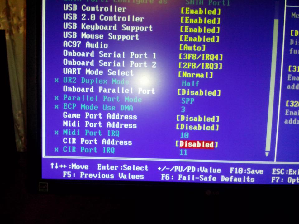 Scythe Опубликовано 4 марта, 2016 Опубликовано 4 марта, 2016 Нет такого. Все настройки с ключевым словом Onboard : - Onboard Serial Port 1 (3F8/IRQ4) - Onboard Serial Port 2 (2F8/IRQ3) - Onboard Parallel Port (378/IRQ7) Всё. Юсб-мышь и клавиатуру включил Game Port Address было 201, поставил Disabled Midi Port Address было 330, поставил Disabled Для винта UDMA имеют значения disabled или auto. Везде стоит auto. UDMA5 нету. Принтер - это что? Onboard Parallel Port ? Parellel Port Mode ? LPT ничего не нашел. Драйвер аудио скачал, поставил. Да вроде он и стоял, запись в ДУ такая же. Кааак нет??? Если таки реально нет - попробуй Потом находясь в БИОСе попробуй сочетание клавиш Ctrl+F1 - в БИОСах Гигабайта это вызов расширенного меню LPT это Onboard Parallel Port в твоём БИОСе.