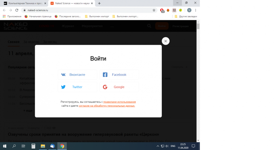 andreyyy Опубликовано 11 апреля, 2020 Опубликовано 11 апреля, 2020 Ребята, я же написал, что кнопку "войти" нажать нужно. Кнопка работает ? Сайт у меня открыается. А войти не могу. На работе на днях входил. Дома не могу ни в одном браузере, ни в другом. Ничего не происходит. Какой-то сценарий отказывается работать. И я не знаю, связано ли это с моим компом или у них на сайте глюки. Вверху оранжевая кнопка "Войти" https://naked-science.ru/ У вас работает ? И у меня https://naked-science.ru/ открывается через ИЕ, эдж, хром, но честно говоря твой кейс не понятен, зачем проводник то? ) Потому что в хроме не нажимается. ИЕ сильно отличается от Хрома, поэтому нужно было попробовать в ИЕ Я понятия не имею, что такое кейс, если что. Русского аналога что, нет ?