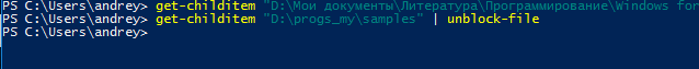 Outlawif Опубликовано 24 апреля, 2020 Опубликовано 24 апреля, 2020 2 соображения: 1. Попробуй проще - в павершелл: dir D:\progs_my\samples | Unblock-File 2. Запусти павершелл от администратора