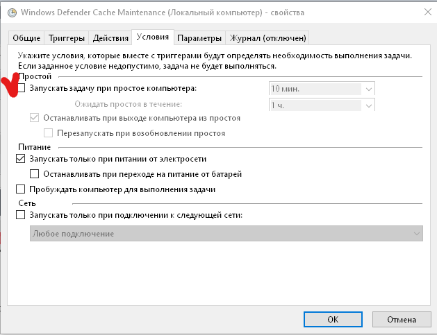 Faust Опубликовано 15 июня, 2020 Опубликовано 15 июня, 2020 Каммерер, лично у меня всё по дефолту, и нагружает систему только в простое, и то процентов на 5-10 во-первых попробуй через панель управления установить наиболее оптимальное для тебя время, когда ты компом особо не пользуешься, во-вторых поубирай с планировщика windows defender все задачи (там где триггеры должно быть пусто), и в-третьих, хоть у меня галка и не стоит, но ты можешь поставить на "запускать задачу при простое" Показать