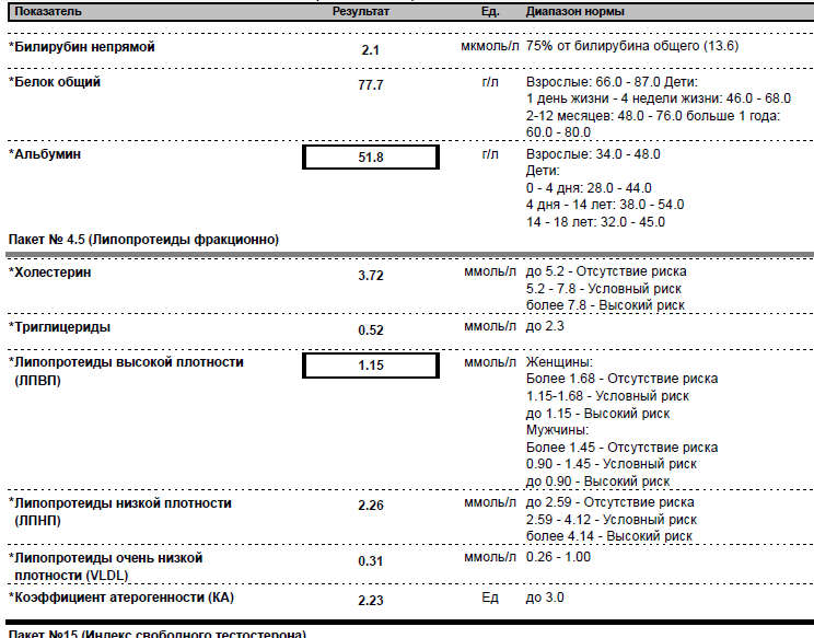 Jus Опубликовано 16 марта, 2013 Опубликовано 16 марта, 2013 (изменено) Камараден, есть вопрос по анализам. Решил на холестерин/печеночные пробы проанализироваться, и оказалось, что АЛТ/АСТ завышен несколько. Судя по краткому гугленью превышение в 1,5-5 раз это малая степень превышения, да и такая фраза вроде как оптимизму придает Еще, отклонения от нормы могут наблюдаться у спортсменов, которые склонны к постоянным растяжкам и повреждениям мышечной ткани Но все же в целом стоило бы привести в норму, тем более на кето планирую со след. недели, а там жиров много... Чего стоит попить/поесть/пожевать, чтобы нормализовать? Далее скрины анализов: Изменено 16 марта, 2013 пользователем Jus