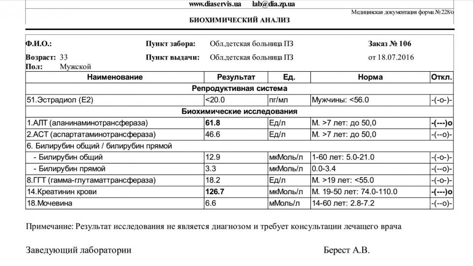 NeKefirINeSmetana Опубликовано 18 июля, 2016 Опубликовано 18 июля, 2016 Отчитаюсь немного по "лечению" печени... Как я уже писал в теме "Чат химиков", недавно закончил сушку и решил перед следующим курсом привести в порядок печень. На оралке сидел около полугода с небольшими перерывами - сначала был турик по 40мг (перечисляю только оралку), затем через месяц перерыва метан по 60мг на 9 недель, затем 2 недели отдыха и с середины апреля примерно станазолол (сначала по 40мг, затем снизил до 20мг). Закончил курс и приём таблеток 27 июня. Регулярно сдавал анализы - АЛТ/АСТ с каждым разом всё больше. Последние данные на курсе - АЛТ/АСТ - 95,1/104,4. Билирубин и ГГТ всегда были в норме. Случайно в журнале увидел рекламу препарата Гепахесл - прочитал состав - мне показался неплохим: ПоказатьСклад 1 таблетки: Екстракт молочного чортополоху (розторопші плямистої) – 116,6 мг екстракт куркуми довгої (турмерику) – 116,6 мг екстракт артишоку – 125 мг кнікус благословенний – 108,3 мг орегонський виноград дикий – 108,3 мг лецитин – 183,3 мг холін – 100 мг інозит – 100 мг L – метіонін – 50 мг вітамін В 6 – 6 мг ноні – 75 мг С трудом нашёл в нашем городе в одной аптеке баночку этого препарата и пропил её по инструкции - по 1т 3 раза в день. Затем ещё около недели принимал на ночь "Энтеросгель" (у Имерякова подсмотрел). Сегодня (спустя около 10 дней с момента прекращения приёма Гепахелс) сдал анализы: Показать Результаты почти в норме спустя всего несколько недель после курса. Конечно, трудно оценить вклад каждого фактора по отдельности (отдых, Гепахелс, энтеросгель, а может фрукты!), но динамика, как мне кажется, неплохая для такого короткого времени...