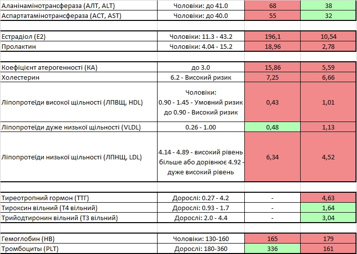 kilozaur Опубликовано 11 февраля, 2019 Опубликовано 11 февраля, 2019 Вот повторно сдал анализы. Динамика положительная по липидному профилю. прошло 3,5 недели. Продолжать пить никотинку? пью по 2 грамма. увеличивать дозу или оставить? Эстро и Пролактин убил в хлам. Анастрозол по 1 мг через день и 0,25 кабера раз в неделю. Тут ничего не делать? сам поднимется? на 500 теста. Вопрос по щитовидке. Уже полтора-два месяца на диете, минус 7 кг (в том числе вода от эстро). Как поправить показатели? Гемоглобин, тромбоциты - как их исправить? Показать