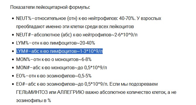OlegRO Опубликовано 13 марта, 2021 Опубликовано 13 марта, 2021 уверен что у тебя в норме если хочешь суперточно быть убежденным, выполни условия и сдай отдельный анализ на лимфоциты Есть всего два условия которые нужно соблюдать: Кровь берется в утренние часы. За 8-12 часов до забора крови нужно воздержаться от пищи. /и в твоем случае без тренировок 3 дня/ Также не следует курить за 2-3 часа до проведения процедуры. Компоненты табачного дыма могут вызывать серьезные временные изменения в уровне белых кровяных клеток. Стоит избегать употребления алкоголя за 2-3 дня до взятия анализа так как алкоголь также может повлиять на достоверность полученных результатов. Если не соблюсти эти требования, возможно ухудшение точности исследования, что приведет к получению врачом недостоверной информации и возможным ошибкам в диагностике либо повторному назначению обследования. и как всегда нормы разные