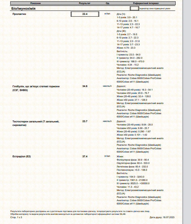 CookieDude Опубликовано 29 июня, 2023 Опубликовано 29 июня, 2023 Доброго дня! Приблизно місяць тому закінчив курс [турінабол (7 тижнів) --> оксандролон (5,5 тижнів) --> Кломід (ПКТ)]. Сьогодні здав аналізи в отримав наступну картину. Хотілося б почути коментарі на рахунок високого ГСПГ та вільного тестостерону та і по решті показниках? Дякую.