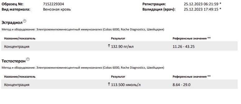 IgoRS Опубликовано 26 декабря, 2023 Опубликовано 26 декабря, 2023 Неделю спустя пересдал в хеликсе ничего не поменялось.... не лаба плохая, а тесто полупустой (напомню, что после 3-х недель по 750мг/нед энантата ZHPC)