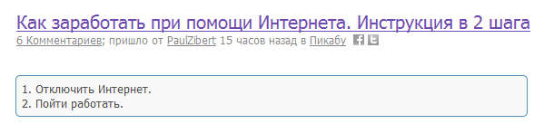 Lil_Lejed Опубликовано 17 ноября, 2011 Автор Опубликовано 17 ноября, 2011 Кто какие способы знает, занимается этим??! Я вот примерно за месяц на бирже статей Адвего сколотил 27$)) По времени уходило примерно пол часа в день. Надоело статьи печатать, вот думаю что ещё можно попробовать... Может кого интересует данная тема, кто что подскажет??! Видел уже такой вариант)) Летом у нас для несовершеннолетних хоть какая-то работа есть, а щас не найти вообще... И то там шанс маленький что возьмут, берут тех кто постарше. Так что приходится обходиться без этого способа!