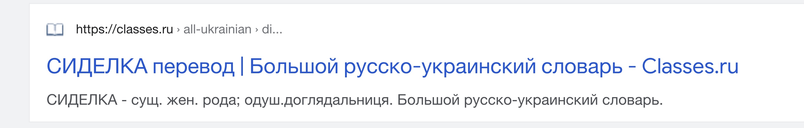 Outlawif Опубликовано 29 июля, 2022 Опубликовано 29 июля, 2022 Нигде нет Там же ссылка прямо в цитате: http://sum.in.ua/s/sydilka Не нравится тот словарь, можно любой другой выбрать. Этот https://slovnyk.ua/index.php?swrd=%D1%81%D0...%BB%D0%BA%D0%B0 Или этот https://educalingo.com/uk/dic-uk/sydilka И даже этот https://uk.worldwidedictionary.org/%D1%81%D...%BB%D0%BA%D0%B0 Гугл обычно предлагает один вариант перевода. Редко несколько. Но далеко не все. Кровоточат, или нет, слово абсолютно легальное, украинское, есть во всех словарях.