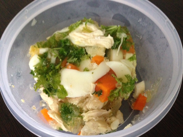 Elgreg Опубликовано 19 ноября, 2014 Опубликовано 19 ноября, 2014 Мой рецепт высокобелкового блюда, простого приготовления, "Фитнес-заливное" Берем куринную грудку, где-то полкилограмма. Чистим, моем как положено. Бросаем в кипящую воду. Варим пару минут и сливаем первый отвар с жиром и другими нехорошими вещами) Заливаем чистой водой и оставляем вариться. Воды нужно где-то литр. Одновременно берем среднюю морковку, моем, чистим и варим до готовности. Берем четыре яйца - варим. Я варил морковку и яйца одновременно. Грудка вариться до готовности (минут сорок), почти сразу после начала варки бросам в бульон лавровый лист, а за 5 минут перед окончанием варки добавляем специи, можно зубчик чеснока. Я взял специи с добавлением трав, добавил полторы чайных ложки. Когда курица готова бульон выключаем, курицу достаем и ставим стынуть, лавровый лист выбрасываем). В горячий бульон насыпаем грамм 30-40 желатина и помешиваем до полного растворения. В отдельнуб большую тарелку слоями выкладываем мекло порезанную морковь, курицу. Четыре яичных белка и один желток. Заливаем теплым бульоном. Сверху выкладывем петрушку или другую зелень по вкусу. Ставим в холодильник. На все блюдо получается около 120 грамм белка. Употребляется легко, особенно с горчицей или хреном) Смачного!