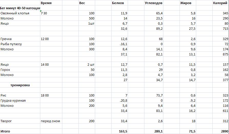 mighty Опубликовано 15 апреля, 2012 Автор Опубликовано 15 апреля, 2012 В калорийности ошибся чуток, в сумме получается 2590.