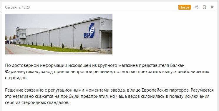 Outlawif Опубликовано 21 августа, 2021 Опубликовано 21 августа, 2021 Балкан - официальный производитель Это половина правды ) Он официально производит ТОЛЬКО препараты тестостерона. Из анаболегов. Все остальное - оно как бы балкан, но балкан тут типа не при чем )) Официально. Так что это неофициально официальный производитель ) И новость на этом фоне выглядит вообще каким-то левым вбросом. Да и сам язык статьи "по достоверной информации из крупного магазина и бла-бла"... А мне авторитетная цыганка нагадала, что харьковская фабрика Здоровье в аспирин начнет пурген добавлять, для пущего эффекта )