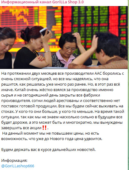 Bogdan84 Опубликовано 21 ноября, 2024 Опубликовано 21 ноября, 2024 думает по этому поводу? coleman79, Речь идет о не легальных производителях сырья . Их собственно , и накрыли . В связи с чем , закупить сырье аас в Китае , сейчас проблемачично . А черн рынок ААс (готовый продукт ) , как раз таки и держится на таких источниках сырья . Касательно оф заводов по производству , то их это не коснулось .. Но на черн рынке ААС - это ни как не отразится практически , т.к андер производители ААС , не имеют доступа к оф заводам в Китае . Так что .. У кого есть бюджет , и кто не ланирует ПКТ , или переход на САРМ .. То лучше пополнить запасы фарша , хотя бы на 4-6 мес ..