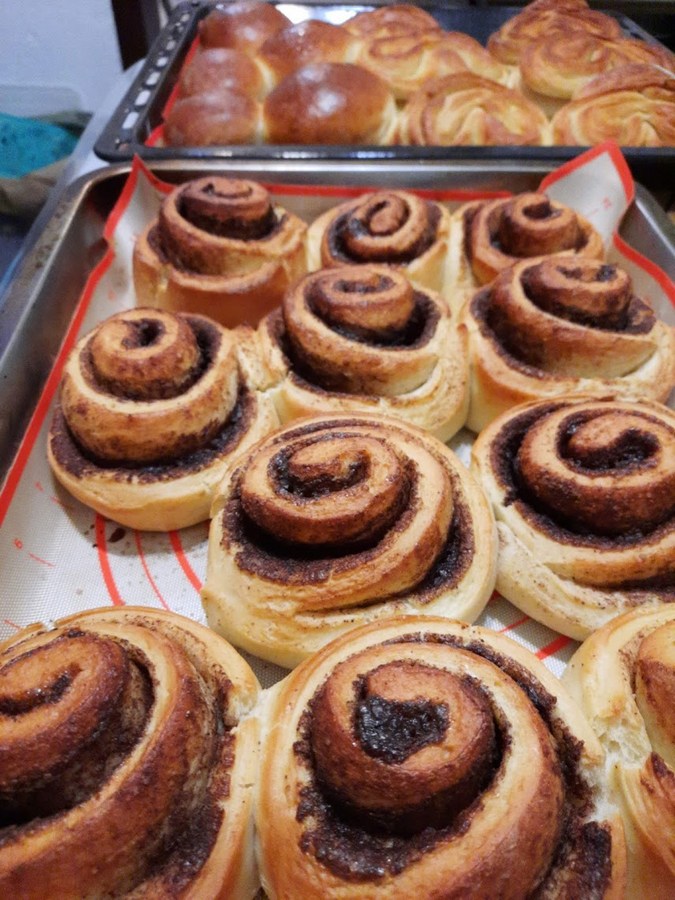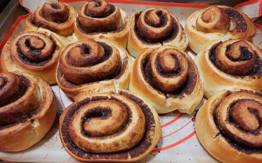 Jus Опубликовано 22 февраля, 2021 Опубликовано 22 февраля, 2021 Главный ингридиент тут - жена В точечку, вот в самую тютельку! ))) Костян, рецепт в студию)) Индигридиенты и все такое прочее) На объем, который на фото: 1160 г муки 400 мл молока 200 мл воды 1 пачка сухих дрожжей (11г маленькая пачечка) 2 яйца 140 г сахара 40 г масла сливочного растопленного в тесто чайная ложка соли ванилин по желанию в теплую воду столовую ложку сахара + дрожжи и в теплое место минут на 10 в другой емкости теплое молоко + растопленное масло + сахар (остальной) + опара из дрожжей, перемешиваем. Два яйца, соль - перемешиваем и поэтапно добавляем всю муку. Замешиваем мягкое тесто. Если добавляется ванили, то его лучше смешать либо с мукой либо с сахаром и получившееся тесто убираем в теплое место, пока не увеличится вдвое. Потом раскатываем и делаем булки. Для булок с корицей слив маслом смазать раскатанный пласт теста, посыпать сахаром с корицей (кол-во сахара и корицы по вкусу, заранее смешать) Скручиваем в рулетик, нарезаем сантиметра по 4-5. Даем постоять в противне минут 10 и в духовку на 180 градусов минут на 15-20 (смотреть по готовности в зависимости от духовки, когда стали румяные - готовы)