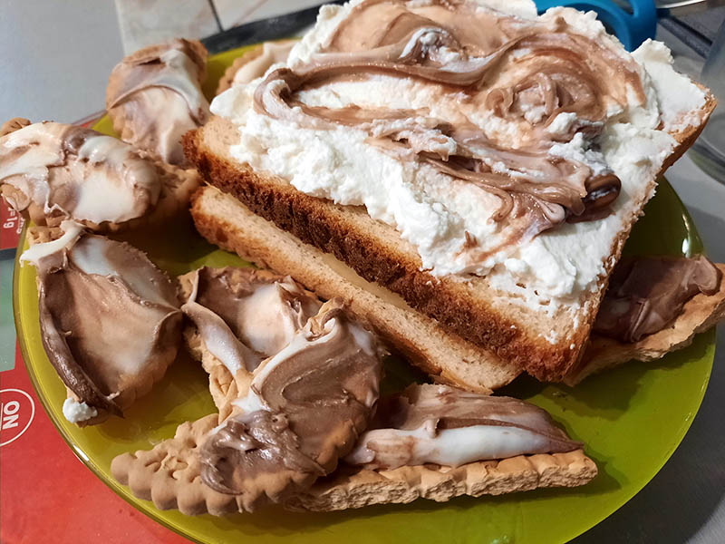 Jus Опубликовано 17 ноября, 2021 Опубликовано 17 ноября, 2021 Прием пищи был не интересный и скучный, гречка с курой, чего его фотать? Потом решил немного шлифануть с чаем Тосты с рикоттой и шоколадно-кокосовой пастой ну и бессменные печеньки "Мария" с той же пастой