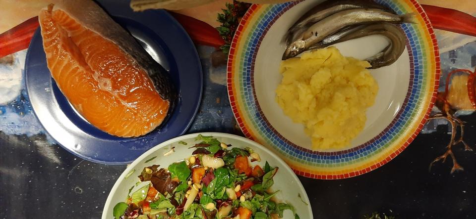 Дід Опубликовано 5 февраля, 2022 Опубликовано 5 февраля, 2022 Пюрешка, рибки трішки, салат -зелень,кедрові горішки, олійки оливкова, виноградна, мангова, помідорки,зелень всяка-смакота!!! Показать