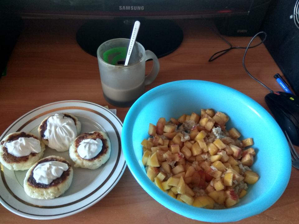 Пропионатычь Опубліковано: 6 вересня 2018 Опубліковано: 6 вересня 2018 овсянка с персиками ?ага)) Сырники и кофа с кокосовым маслом)