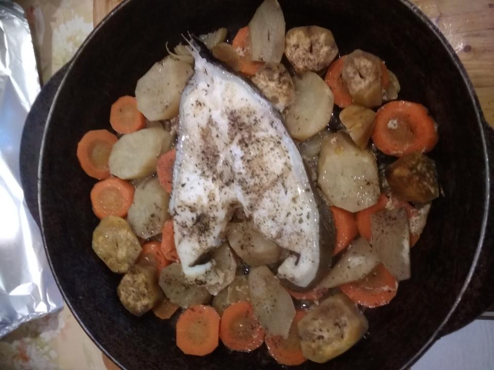 Power_andrey Опубліковано: 24 березня 2019 Опубліковано: 24 березня 2019 Стейк зубатки коварная штука, разморозил-уменьшился, тепловая обработка-уменьшился. Подушка морковь, лук, батат. В духовке накрыто фольгой.
