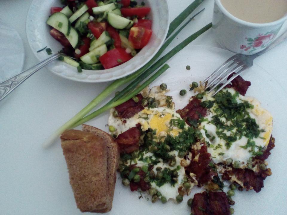andreyyy Опубліковано: 8 червня 2019 Опубліковано: 8 червня 2019 Захотелось бекона. Видимо, нехватка бекона в организме, потому что сильно пробило. Сгонял за мясистым подчеревком. Обжарил с солью и перцем. Добавил 2 яйа. Решил молодой горошек, который обычно уже в готовую яичницу сыпят сверху, слегка обжарить. Интересно стало. А он начал стреляться на сковородке как та кукуруза )