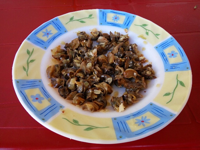buran07 Опубліковано: 8 липня 2019 Опубліковано: 8 липня 2019 По улиткам. На вкус - съедобно, напоминает рапанов. Приготовление: хорошо помыл, залил кипятком, 5 мин. покипятил, остудил, вилкой вынул зверя с раковины, отделил кишки и всякие органы, поджарил на масле с луком и чесноком, сбрызнул лимоном. Других приправ-специй в полевых условиях не нашел. Из нюансов: мяса в улитках с гульких нос, съедобна только наружная голово-нога (на фото один маленький кусочек - это все мясо с одной улитки). Кароч, шоб дядьку нормально пожрать, улиток нужно пол ведра.