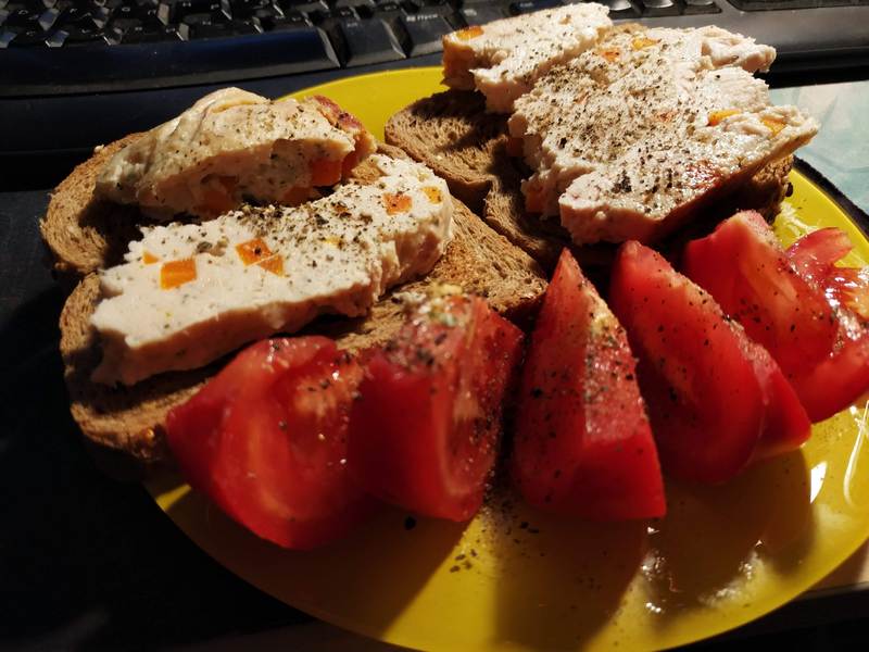 Jus Опубліковано: 24 липня 2019 Опубліковано: 24 липня 2019 Что-то после ужина захотелось перекусить... пара тостов из хлеба со злаками, самопальная ветчина из курогрудки и помидорки, все это перцем черным, молотым...