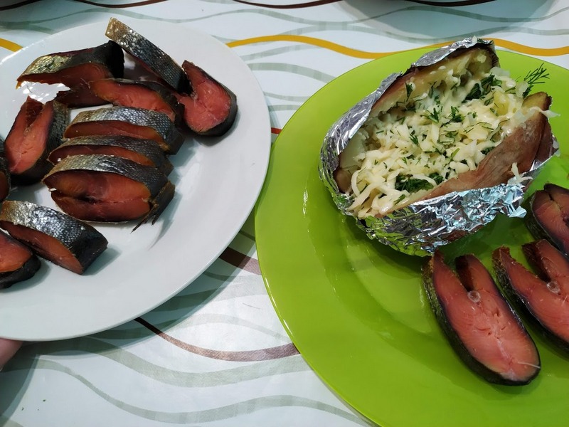 Jus Опубліковано: 1 серпня 2019 Опубліковано: 1 серпня 2019 Берется здоровая картофелина, запекается в фольге, потом разрезается пополам почти, часть середины вытаскиваем, разминаем, пока горячее с маслом, сыром и зеленью - и обратно. И все это дело с рыбкой. Ммм... ум отъешь!