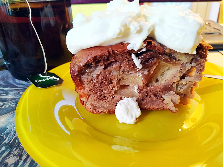 Jus Опубліковано: 8 лютого 2020 Опубліковано: 8 лютого 2020 Импровизация на тему шарлотки (с добавлением банана и какао) со взбитыми сливками. Ну и чай, конечно же