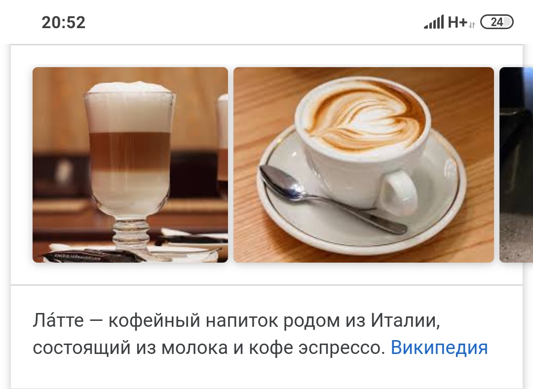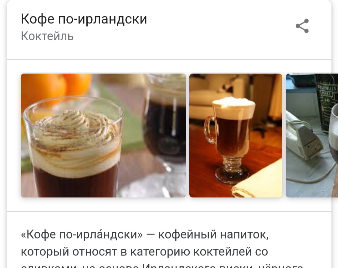 Orvex Опубликовано 12 сентября, 2019 Опубликовано 12 сентября, 2019 кофе по-венски, ирландский кофе и еще миллион Да.есть такие названия кофейных напитков. Но мог бы ты вбить их в гугл? А также лате,раф кофе и подобную мешанину.90%(если не 100,не проверял) ресурсов дадут им определение как кофейные напитки Показать Показать И тд по списку.. А вот так выглядит кофе. Показать
