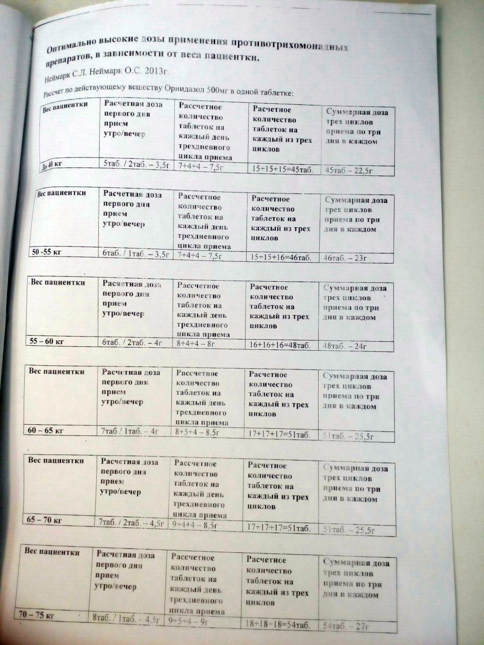 JOCKER Опубликовано 30 августа, 2020 Опубликовано 30 августа, 2020 поправка по неймарку неправильно расписал верно так: первый день (4,5 грамма) утро - 8табл(4грамм) вечер - 1 табл второй день (2,5 грамм) утро -4 таб вечер - 1 таб третий день (2 грамма ) утро - 3 таб вечер -1 таб итого за трёхдневный цикл: 9 грамм орнидазола три цикла: итого 27 грамм * несколько