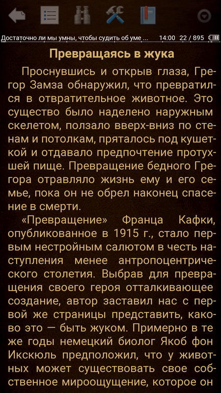 inimak Опубликовано 7 марта, 2017 Опубликовано 7 марта, 2017 Начал читать книгу про математику и вспомнил, что я ее года полтора назад уже читал. andreyyy, Повторение - мать... )) я с планшета люблю читать, только разрешение экрана должно быть максимальным преимуществ перед киндлом для меня море во-первых, в старом киндле без подсветки реально надо читать при свете во-вторых, лично меня раздражает маленький размер и всё время переворачивать страницы туда-сюда в-третьих, и самое главное - я не читаю просто так, если нет тут же объяснений, а это бывает редко, то многие вещи интересно гуглить, скорость работы планшета и читалки несопоставимы, ну и опять же цвет против ч/б в своё время перепробовал много читалок, реально киндлы самые классные из всех, что попадалась, и те в итоге отдал, потому что с планшетом не сравнится глаза не устают, есишо :) единственный момент - надо планшет 9,7, ipad или подобное, с соотношением сторон 4:3, как у книг и журналов это я просто увидел тут как люди читают с телефонов и компов)) Планшет десятка тяжел, посему хорош только дома. А дома мне комфортнее все же 24 дюйма моноблока. Э-книжка хороша для маршрутки-пляжа-метро-очередей. Правда у меня они все с подсветкой. ))