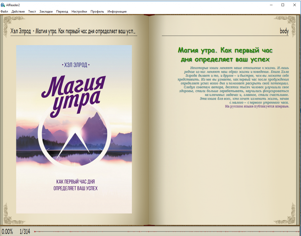 Cardopusher Опубликовано 14 июня, 2017 Опубликовано 14 июня, 2017 А какое отношение имеет используемая тобой электронная библиотека к программам-читалкам? Особенно если учесть, что скачиваешь файлы оттуда ты все в том же формате fb2 или epub? Что за книга? Это и библиотека и читалка в одном(очень удобная) где можно делать цитаты, репосты и тд. И ничего от туда качать не нужно. Крайне удобно. Нашел книгу, добавил на полку и читаешь. Оплачиваешь подписку только раз в месяц. Магия утра: Как первый час дня определяет ваш успех Книга, Хэл Элрод