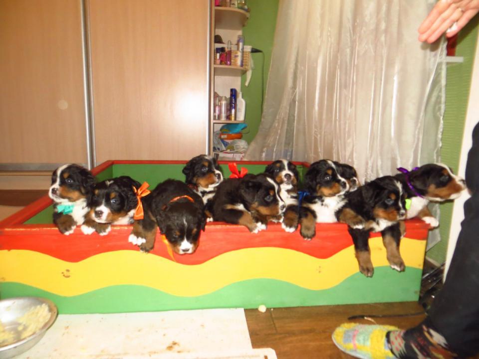 dontsxe Опубликовано 12 марта, 2013 Опубликовано 12 марта, 2013 Предлагаются к продаже щенки Бернского Зенненхунда - 5 мальчиков и 5 девочек, родились 10.02.13. Щенки крупные, с шикарными головами и правильным окрасом. К моменту продажи щенки будут иметь полный пакет документов (щенячью карточку и ветеринарный паспорт), клеймо, вакцинацию по возрасту. Здоровые, красивые щенки станут хорошим другом и охранником вашей семьи. Ищем малышам ответственных и надежных хозяев!