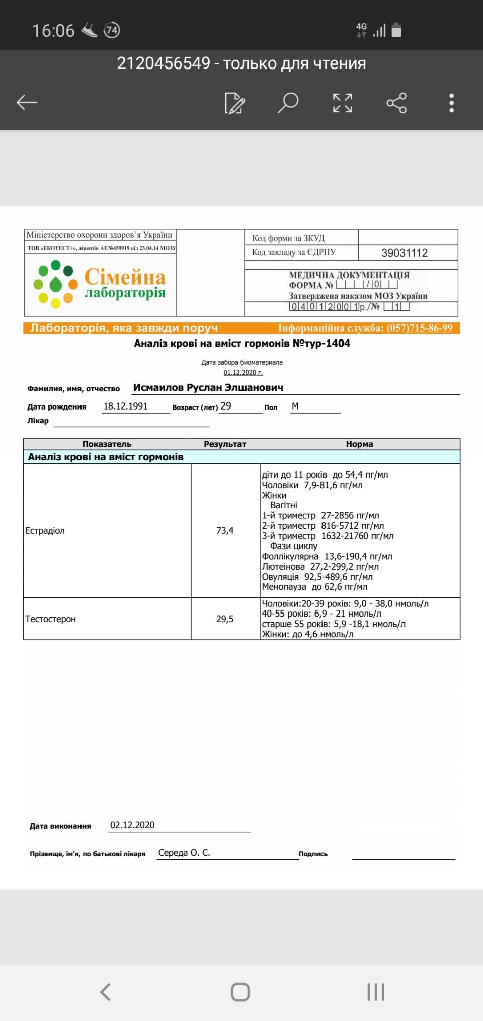 Руха Опубликовано 2 декабря, 2020 Опубликовано 2 декабря, 2020 Приветы Сдал ещё 1 анализ на хгч СП. Первый анализ после 1/3 флакона 5000 ед показал 4.5. Делал анализ в четверг. В пятницу доставил остаток (2/3 флакона 5000) и в понедельник вечером (21-22) поставил п/к 1000 ед. Анализ сдал во вторник утром (8-9 часов). Анализ показал 18.1, скриншот прикрепляю. Тесто общее при этом стало почти 30. Хчг работает хорошо Следующий раз сдам после 1/3 флакона 5000 на 8 день хранения, посмотрим, на сколько живучий) анализ