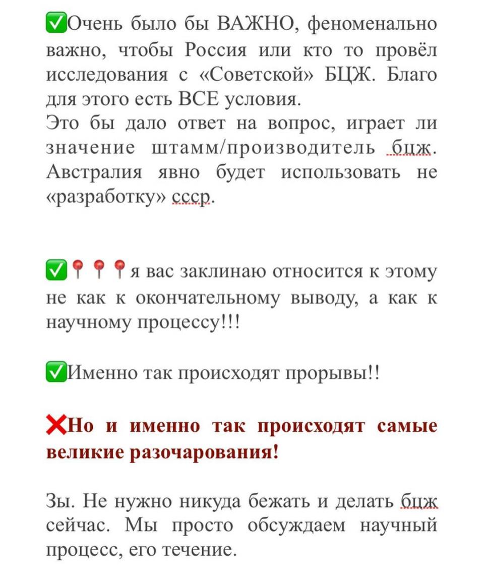 1️⃣Австралия начинает большое клиническое исследование, с участием 4000 мед работников. Им будут вводить БЦЖ, и смотреть, заболеют ли они ковид19, работая, и если заболеют, то как сильно, по отношению к тем, кто привит НЕ будет.
