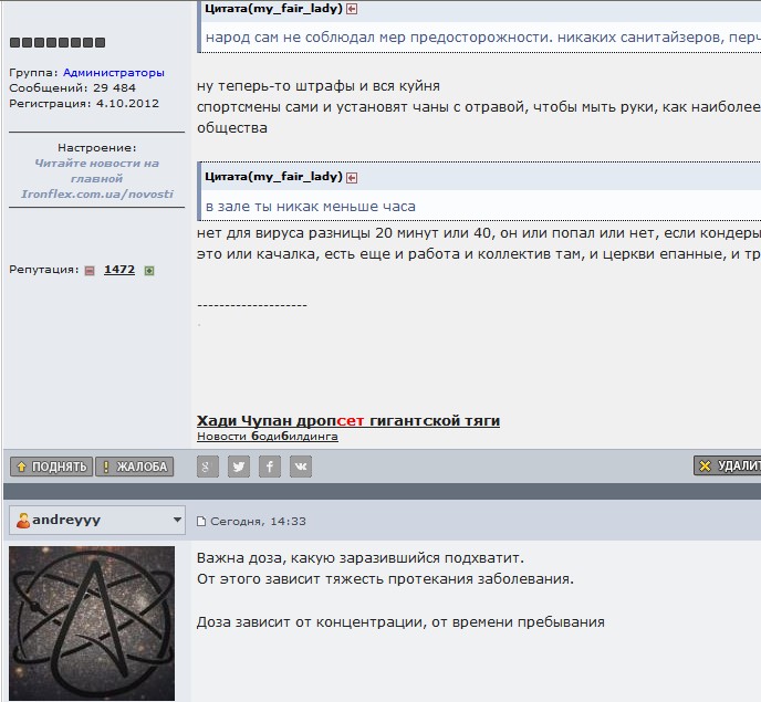 но я говорю о спортзале кондере и заражении в нем, против заражения на работе, магазине, транспорте и почте