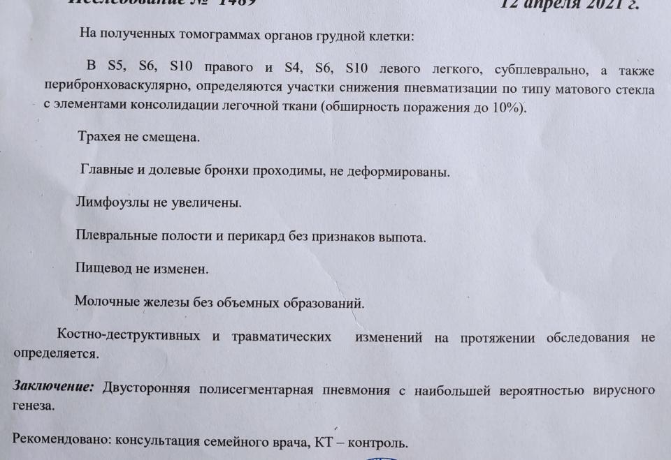 Короче позвонил семейнику. Приходите на прием. Пришел, постоял в общей очереди (очень блин безопасно все организовано). Направила на кт легких и экспресс-тест.