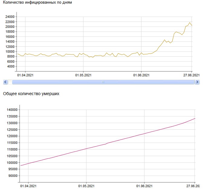 Предыдущий антирекорд смертности от коронавируса в Москве был зарегистрирован всего два дня назад - 25 июня 2021 года. Тогда от COVID-19 в столице РФ скончалось 98человек.