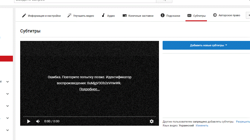 andreyyy Опубликовано 31 июля, 2019 Опубликовано 31 июля, 2019 А у меня что-то ютуб глючит. Решил по свободе субтитры добавить к украиноязычному ролику. Все делаю по инструкции. Вот ролик в режиме "Изменить". Можно кликнуть и он будет воспроизводиться. Счетчик времени ролика показывает адекватную цифру Показать Только кликаю на пункт меню "Субтитры", как роли приобретает вот такой вид Показать Т.е. становится пустым. 0/0 минут. Соответственно, субтитры к пустому ролику не добавить