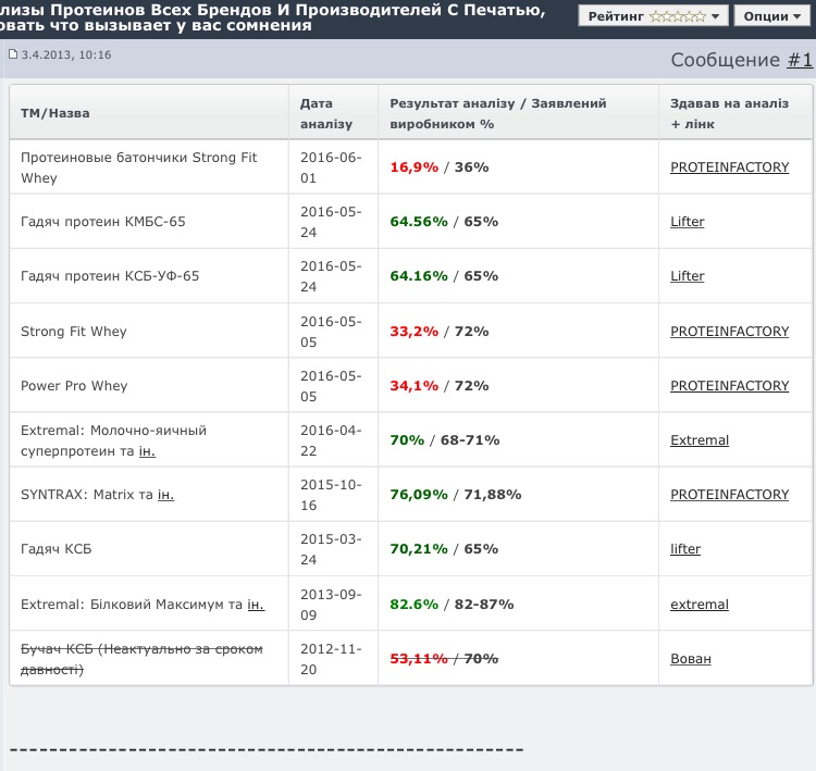 Outlawif Опубликовано 29 августа, 2016 Опубликовано 29 августа, 2016 Здесь есть таблица с результатами анализов протеинов. И где в таблице 100% Whey Gold Standard Optimum Nutrition?