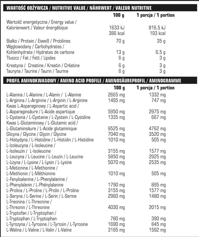 81eg Опубликовано 8 сентября, 2012 Опубликовано 8 сентября, 2012 Ультра ПРО. Аминокислотный состав в 100 г продукта: Незаменимые аминокислоты Заменимые аминокислоты Триптофан1700 мг Гистидин 1400 мг Треонин5100 мг Аланин3800 мг Валин4700 мг Аргинин1800 мг *Изолейцин5100 мг Аспаргин8400 мг *Лейцин8300 мг Глютамин14300 мг Метионин + цистин2400 мг Пролин5100 мг Лизин7400 мг Серин4200 мг Фенилаланин + тирозин4500 мг Глицин1800 мг