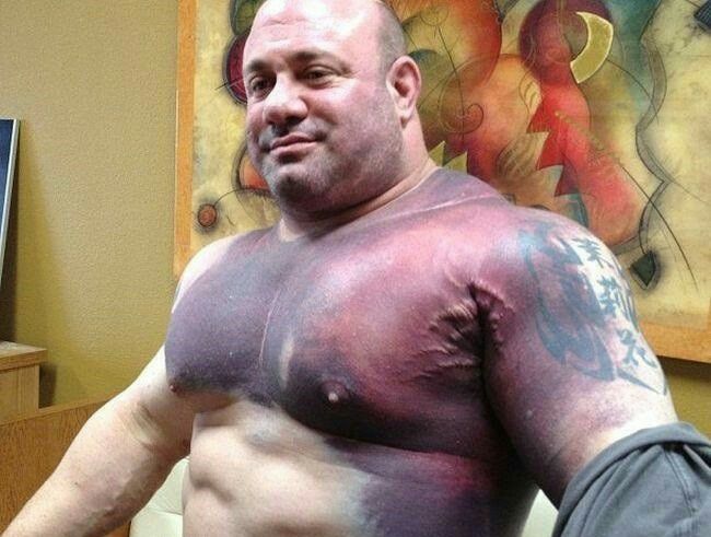 chuguniy Опубликовано 17 октября, 2017 Опубликовано 17 октября, 2017 Тяжелоатлет Скотт Мендельсон задумал поставить рекорд по жиму штанги лежа. Сколько он вознамерился поднять, точно не скажу, но попытка оказалась неудачной - мужик порвал себе грудную мышцу . В результате кожа обрела сине-красный оттенок. (с)