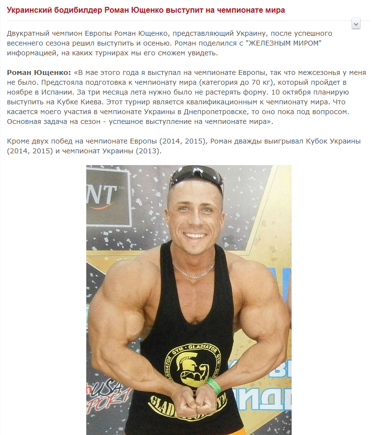 Terror Опубликовано 15 сентября, 2015 Опубликовано 15 сентября, 2015 Роман Ющенко Актуальная форма. Вес 83 кг а чего ты его в новости запостил, а не в фото культуристов? или какое-то бы пояснительное описание дал.. куда готовится, где выступает и тд