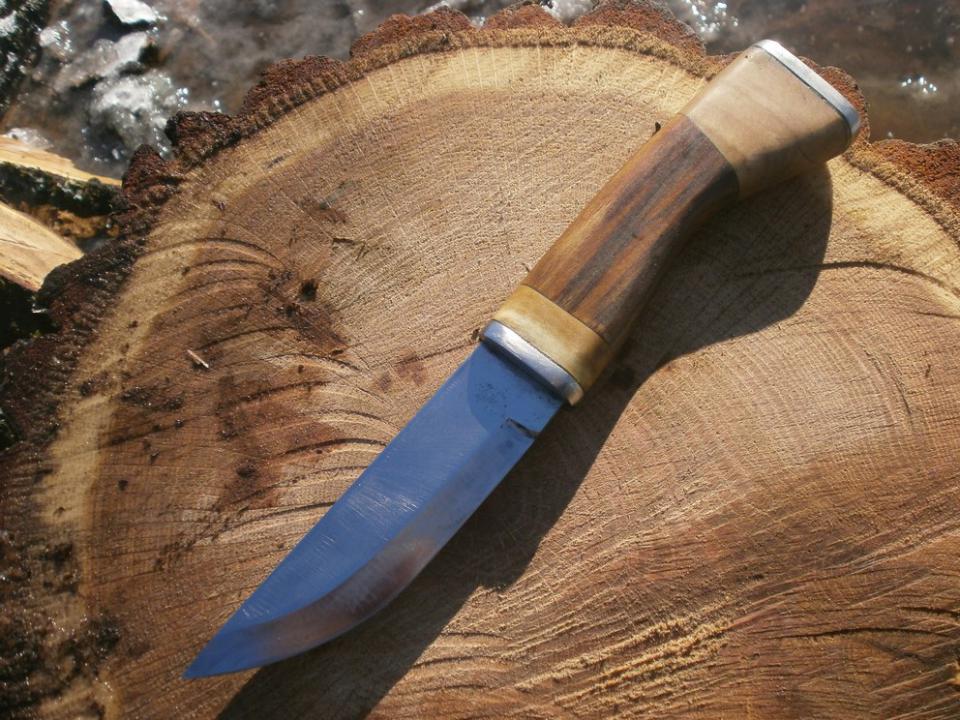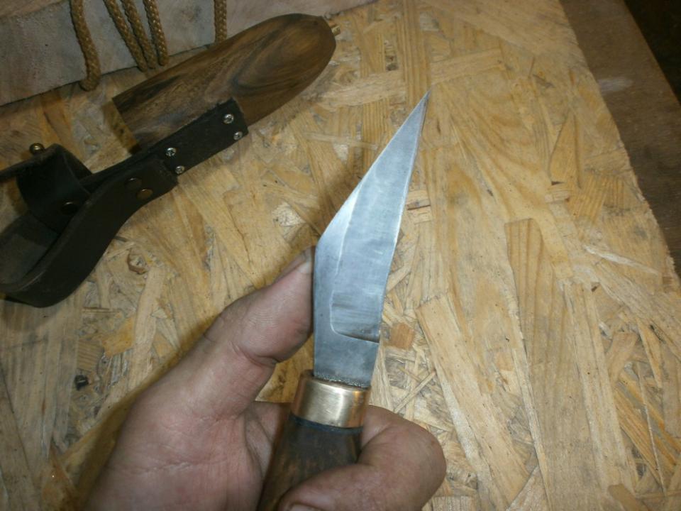 Erik Опубликовано 14 февраля, 2016 Опубликовано 14 февраля, 2016 Вобщем продолжу о своих ножах, может кому-то мои посты покажутся скучными, но мне как-то... :to_pick_ones_nose_eat: пока борьба со зверской сталюкой Х12МФ (на фото с наковальней) идет своим ходом, доделал несколько самобытных ножичков. 1. Запал мне в душу один ножичек, африканских народностей под названием Чокве, который буржуи скопировали в версии складника "спайдерко чокве", но закавыка в том что чокве полюбому фикс, да и не такой гламурный как спайдерко, это рабоче-крестьянский нож, вот он: Показать и это тоже чокве Показать решил я тоже приложить свои очумелые ручки к созданию аутентичного ножа по мотивам чокве Показать ну и к такому ножу нужны оригинальные ножны, пришлось выдумывать, в идеале на рукоять и ножны нужно африканское черное дерево, но у меня его не оказалось, пришлось делать из полтавского ореха)) Показать вот такая штукенция вышла...) мне нравится, даже как то жалко расставаться, интересный ножичек получился, хоть и неказистый на вид. так же попалась мне по случаю полоска стали инструментального быстрореза высоколегированого, со сложной маркировкой 11р3ам3ф2. Взялся я ваять ножики из него... и проклял все на свете, он твердый, вязкий, еще и наждак забивает в момент, с высоким содержанием ванадия и хрома, но ножи из него получаются офигительные, сделал я с матюками пару ножей и зарекся больше эту сталь мучать) Показать№1 №2 но ножи очень резкие и злые вышли, точатся тяжело, алмазом преимущественно, однако и кромка держится без проблем Маньяческое увлечение набирает обороты, товарищи)