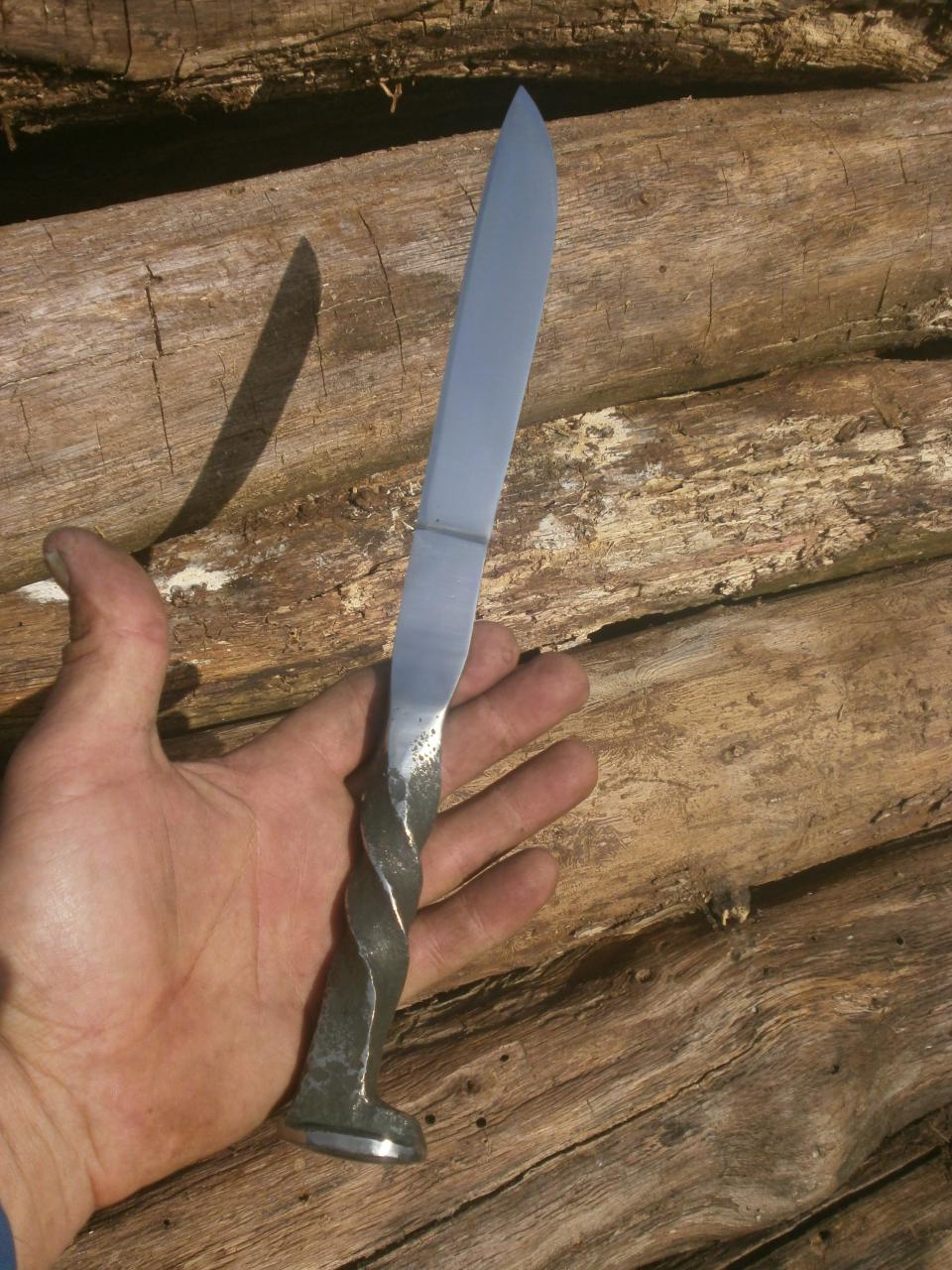 Erik Опубликовано 1 мая, 2016 Опубликовано 1 мая, 2016 никакая это не тайна в инете огромное количество инфы на эту тематику. я делаю так: 1. заготовка обычно в неудобоваримом виде и вообще ее надо поковать для уменьшения размеров зерна, в горне нагреваю и потихоньку вытягиваю примерную форму будущего клина. 2. закалку провожу сразу, на гриндере лучше работать с каленкой, если наждак то после ковки только отпуск. закалка - только в масле, два-три раза, твердость очень высокая и хрупкость тоже - потому делаю небольшой температурный отпуск 3.шлифую заготовку, вывожу спуски, постепенно выхожу на зерно 240, затем полировка или сатин. 4.формирую больстер и рукоять, все монтирую на клин, заливаю эпоксой, стягиваю элементы на хвостовике гайкой 5. обтачиваю рукоять на наждаке, шлифую все это дело наждачкой 6.пропитываю древесину маслами или восками 7. радуюсь результату)