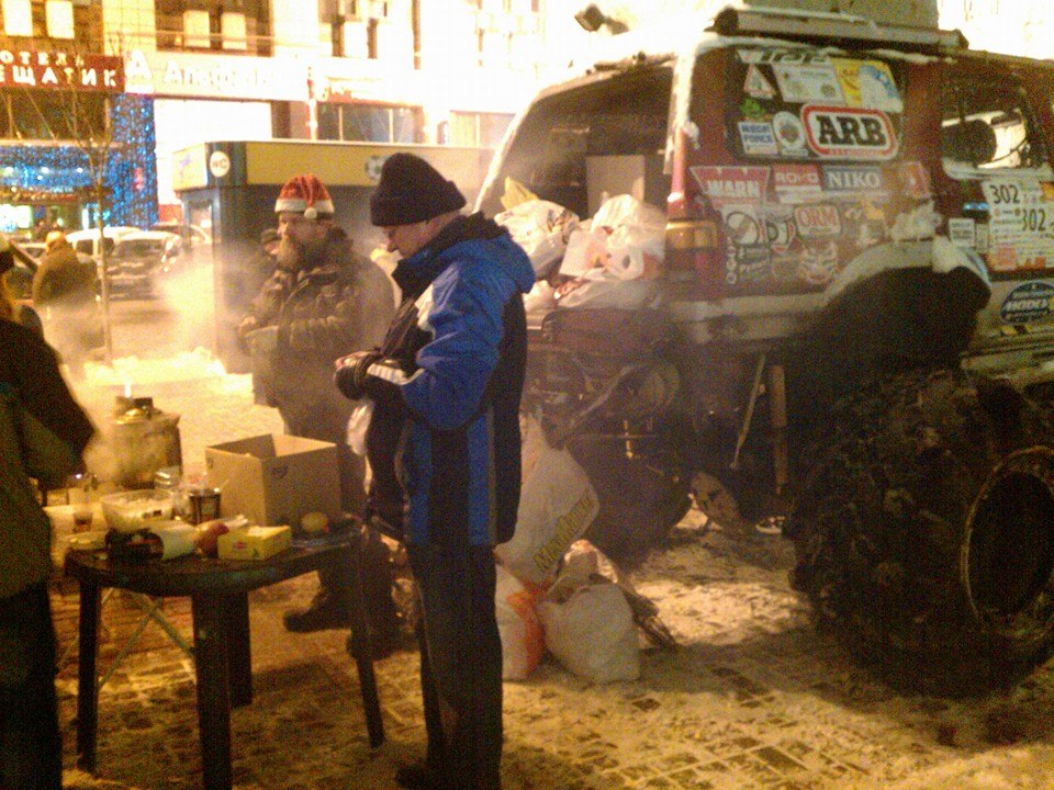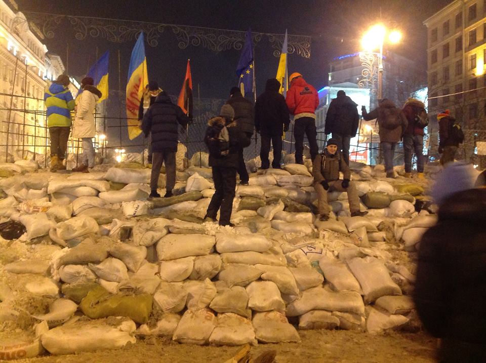 Был сегодня на майдане, люди сооружают большие баррикады из стальных прутьев которые там же и сварят и мешков со снегом, холодильники, мебель все идет в расход, много людей приносят еду, чай и т.д. костры, палатки романтика.