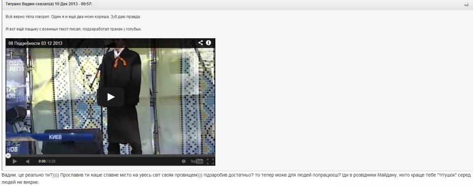 Кстати Титушко не стесняется на нашем местном форуме общатся, из-за неадекватного общения сидит в бане )