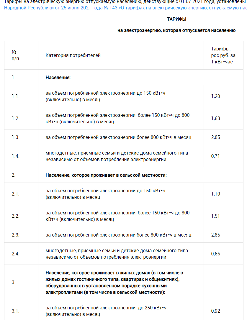 тарифы