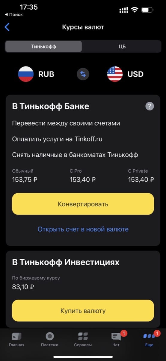только что заходил в приложение тинькоф - курс 153 рубля с мелочью за бакс