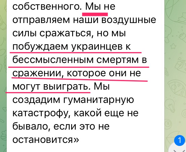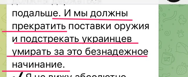 За такое в расход пускать. Прямые призывы сдаваться. Действительно, зачем сопротивляться, ручки вверх, правильно? Я вот лично не хочу оказаться в КНДР, в которую превращается Россия на ближайший десяток лет, потому что тут будет полная изоляция от мира и железный занавес в случае оккупации и аннексии. Будем сидеть в православном чебурнете и славить вождя.