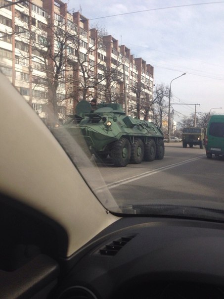 Сегодня днем на выезде из Львова была замечена колонна из нескольких десятков БТРов и военных грузовиков.